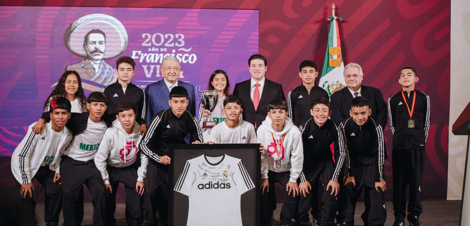El Presidente de México, Andrés Manuel López Obrador, destacó el logro obtenido por la selección mixta de Nuevo León en el Desafío Mundial Madrid 2023 de la Fundación Real Madrid, durante su conferencia mañanera. El mandatario federal felicitó a las y los adolescentes de los Centros Comunitarios de la Secretaría de Igualdad e Inclusión del Gobierno de Nuevo León, resaltando que su triunfo es un ejemplo para todos los niños, adolescentes y deportistas de México.