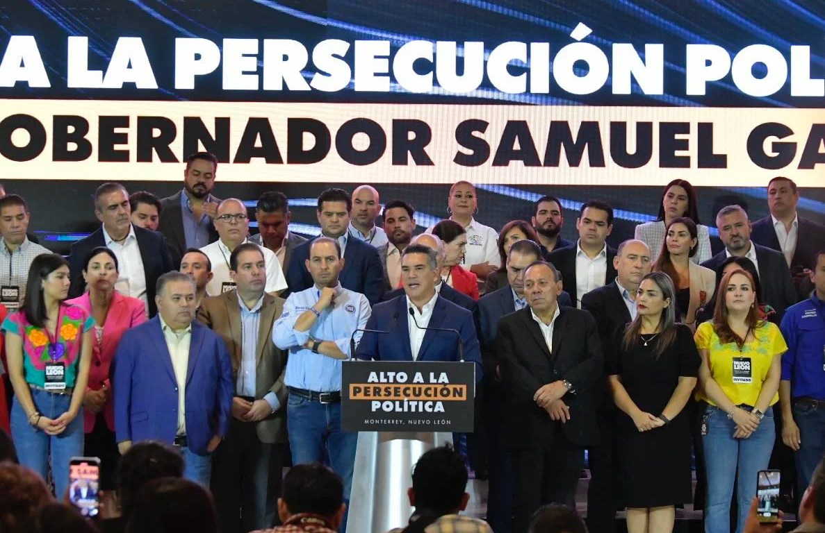 Monterrey.- En una rueda de prensa realizada en un hotel del Centro de la Ciudad, los líderes nacionales del Partido Acción Nacional (PAN), el Partido Revolucionario Institucional (PRI) y el Partido de la Revolución Democrática (PRD) alzaron la voz contra el Gobernador de Nuevo León, Samuel García, exigiéndole que cese la persecución política y el hostigamiento a miembros de la oposición.