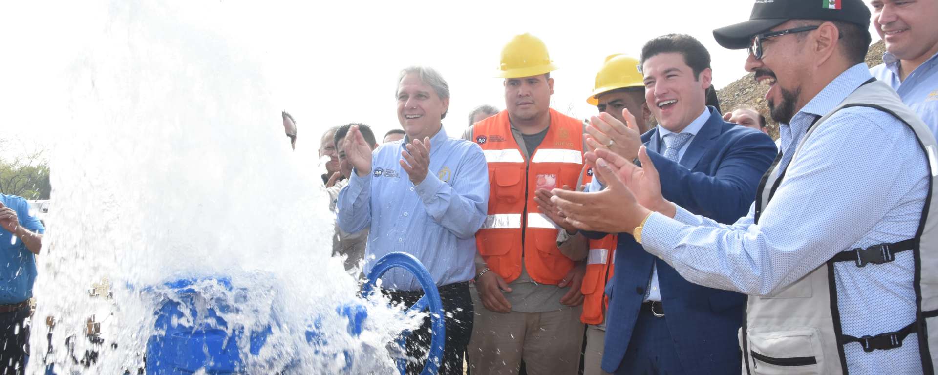 Juárez.- El gobernador Samuel García, acompañado de destacadas autoridades de la Conagua y Agua y Drenaje, así como empresarios colaboradores, realizó la apertura oficial del acueducto Cuchillo II.