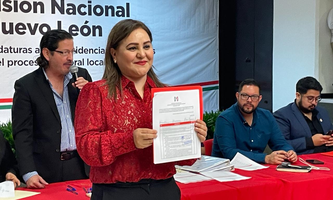 La alcaldesa se registró en medio del apoyo de un grupo de personas que la acompañó desde Aramberri hasta el primer piso del Comité Directivo Estatal del PRI en el centro de la Ciudad de Monterrey.