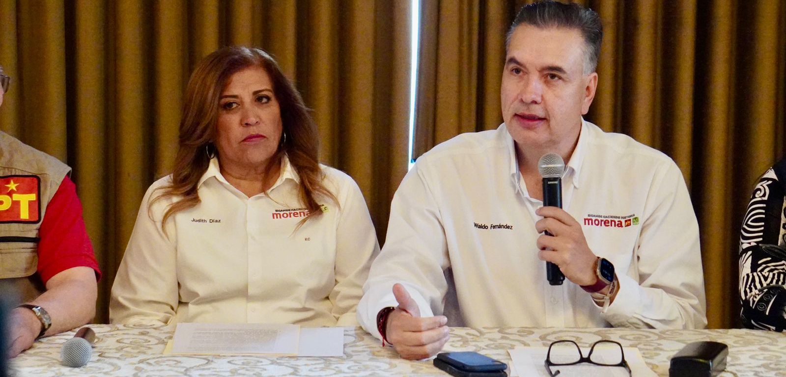 Monterrey.- En rueda de prensa, los candidatos al Senado por la Coalición “Sigamos Haciendo Historia en Nuevo León”, Waldo Fernández y Judith Díaz, respaldaron el modelo social y económico de la Cuarta Transformación, destacando sus efectos positivos en el país y específicamente en Nuevo León, como la reducción de la pobreza y la desigualdad.