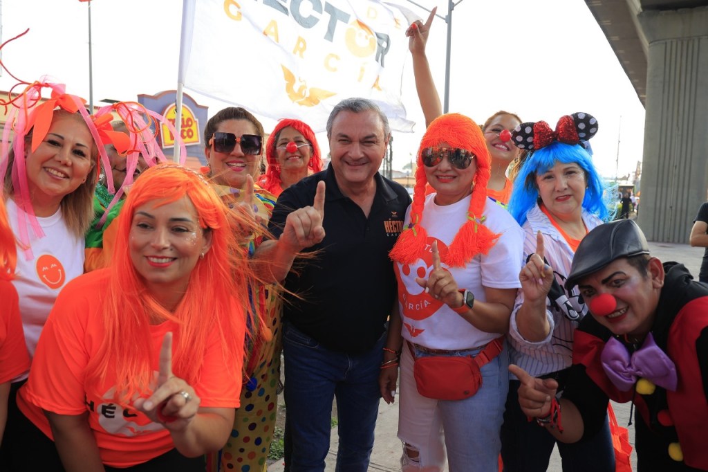 Ataviados con vistosos disfraces de superhéroes, princesas y otros personajes de ficción, el equipo de campaña del candidato emecista inundó las calles el pasado 30 de abril, día consagrado a la infancia. El cruce de las avenidas Benito Juárez y Azteca se convirtió en el epicentro de una celebración llena de color y alegría, donde la ola naranja liderada por Héctor García obsequió dulces y playeras a niños y niñas que se desplazaban en vehículos junto a sus familias, así como a aquellos que paseaban por la zona.