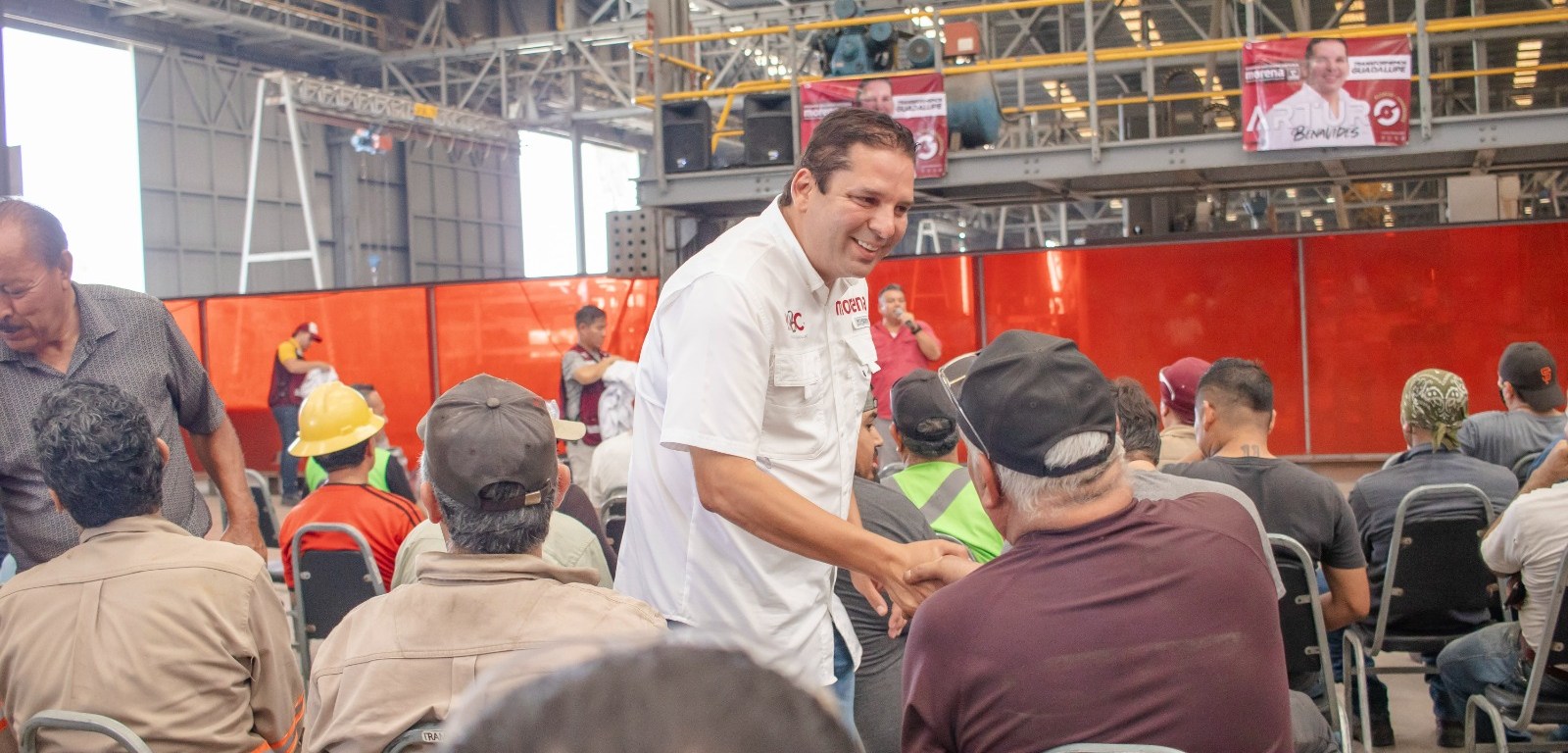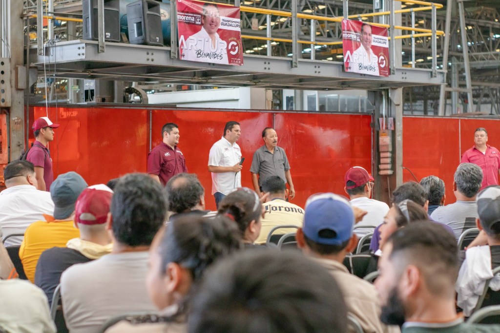 Guadalupe.- En un encuentro con representantes croquistas y trabajadores de una empresa local, Arturo Benavides, candidato de la Coalición “Sigamos Haciendo Historia” a la alcaldía de Guadalupe, expuso su estrategia para elevar la calidad de la mano de obra a través de cursos de certificación y capacitación laboral.