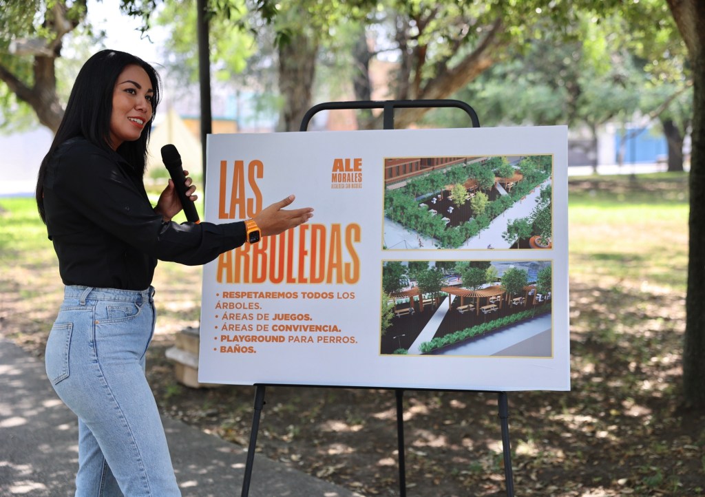 San Nicolás, Nuevo León.- Ale Morales, candidata de Movimiento Ciudadano a la Alcaldía de San Nicolás, ha presentado su propuesta para la remodelación total del Parque Las Arboledas, garantizando el respeto a todos los árboles existentes en este espacio público.