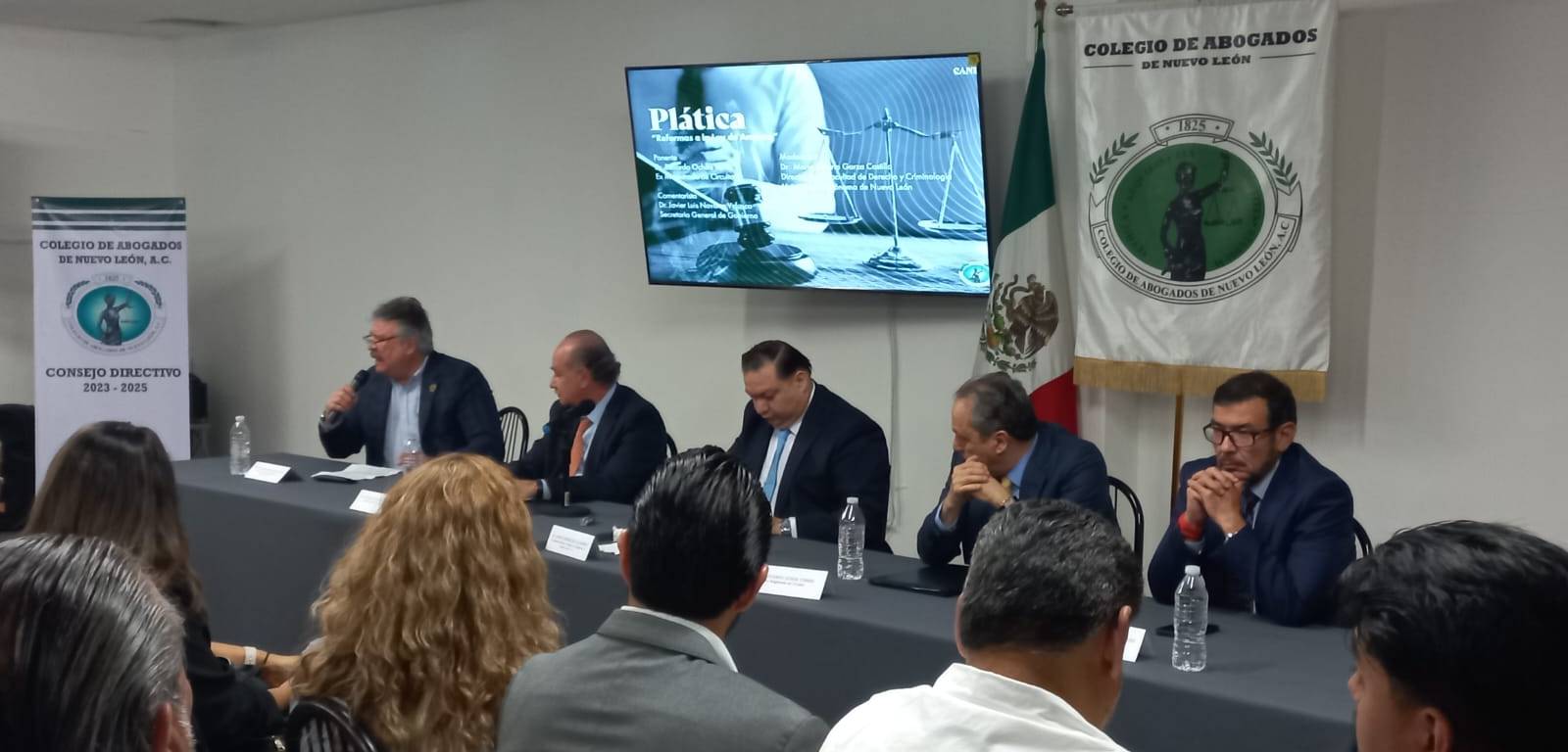 David Rodríguez Calderón, presidente del Colegio de Abogados de Nuevo León, expresó su gratitud por la colaboración del Secretario de Gobierno y del ex magistrado, resaltando la importancia de estos aportes para el mejoramiento de las pláticas dirigidas a los miembros del gremio.