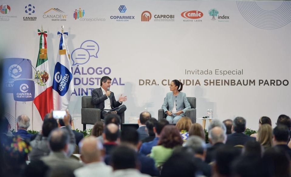 Monterrey, N.L.– En un encuentro clave para su campaña presidencial, Claudia Sheinbaum, candidata de la coalición “Sigamos Haciendo Historia”, se reunió con líderes empresariales de la Cámara de la Industria de la Transformación de Nuevo León (CAINTRA) para compartir sus logros y propuestas, así como responder a las inquietudes de los asistentes.