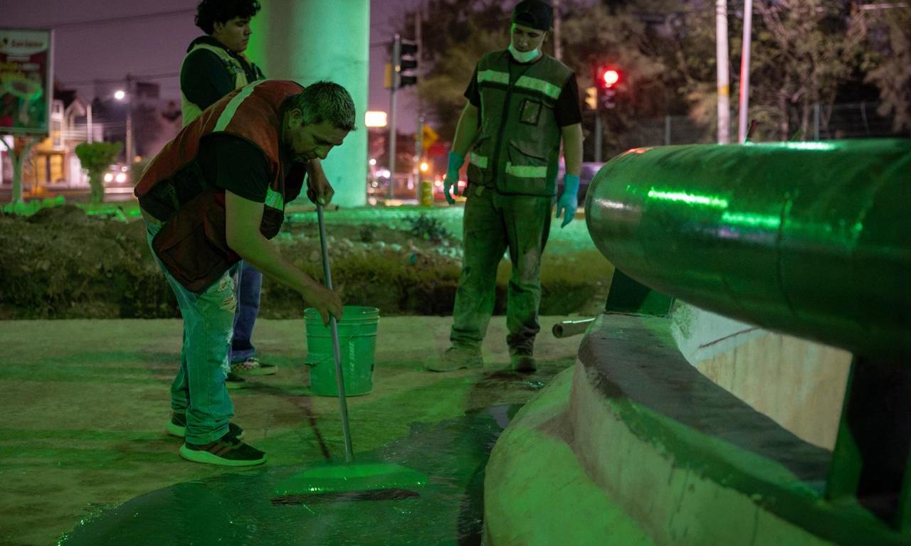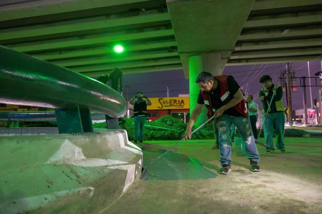 Paralelamente, continúan las labores de aplicación de mortero reparador en las losas y muros identificados con daños por el Instituto de Ingeniería Civil de la Universidad Autónoma de Nuevo León. Estos trabajos se realizan de manera constante para acelerar el proceso de reparación y reabrir la vialidad lo antes posible.