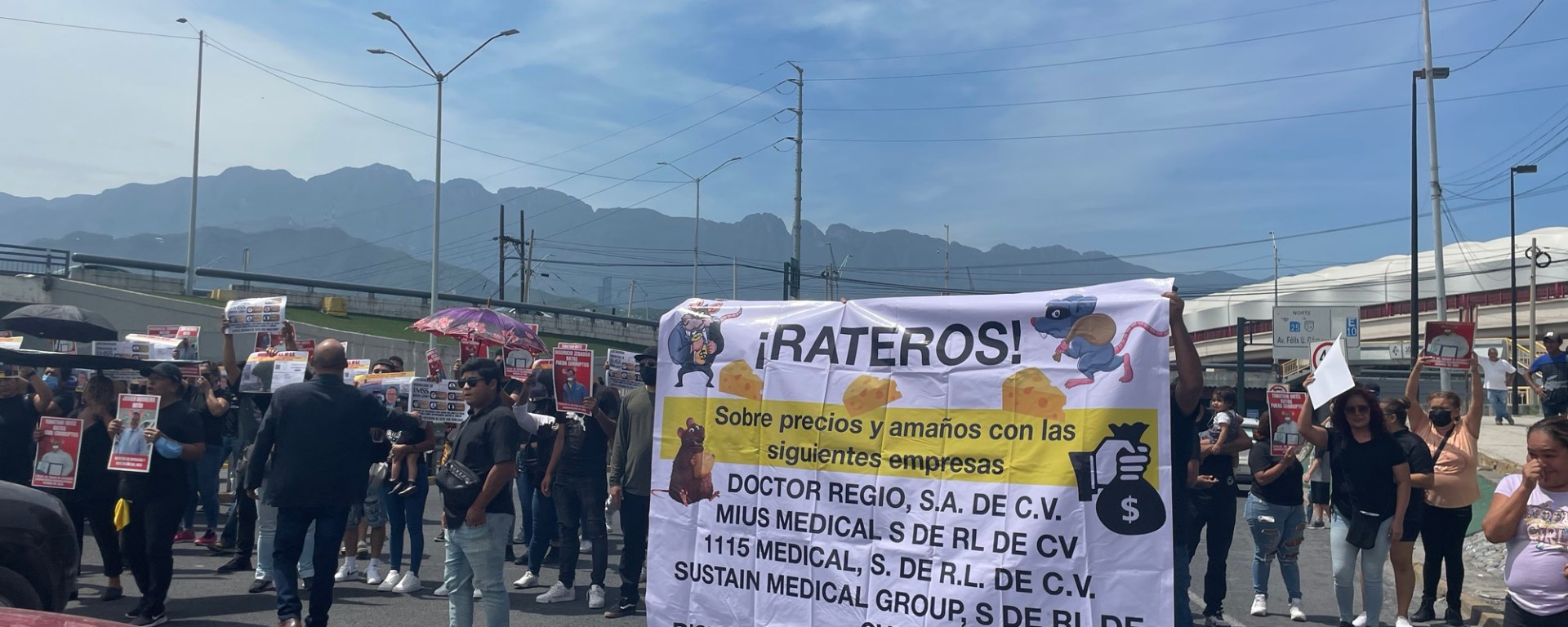 Monterrey, Nuevo León.- Después de que el activista social Pedro Alejo Rodríguez, hiciera público un presunto esquema de delincuencia organizada por la supuesta compra de medicamentos que implicaban desvíos por más de 500 millones de pesos al interior del Instituto Mexicano del Seguro Social en Nuevo León, este lunes las protestas en contra de estos actos de corrupción subieron de tono para exigir se investigue dicha situación.
