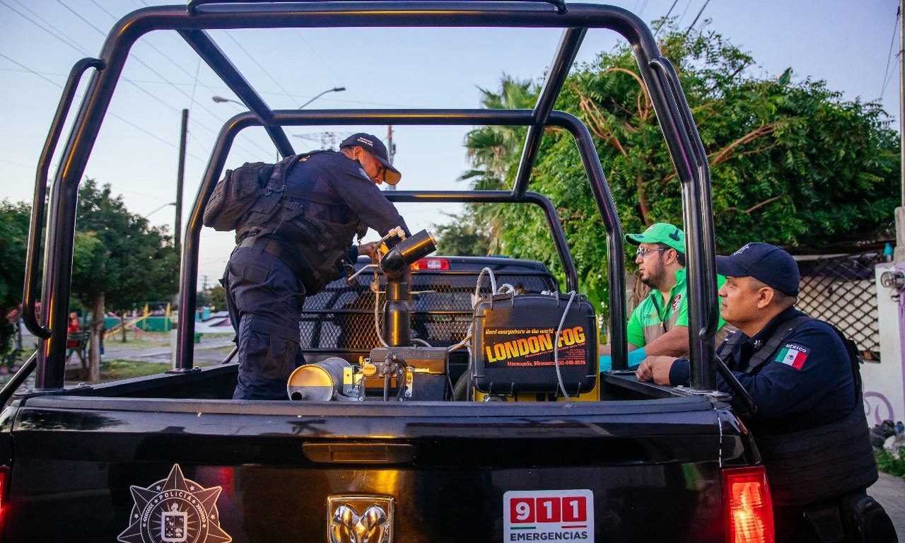 Las patrullas han sido modificadas para portar máquinas fumigadoras en la parte trasera, lo que les permite sumarse a los esfuerzos preventivos que realizan la Secretaría de Salud y la de Servicios Públicos Municipales. Hasta el momento, los vehículos han recorrido colonias como 25 de Noviembre, Valle del Contry segundo sector y Azteca, y se espera que este miércoles lleguen a Cañada Blanca, Josefa Zozaya y Zozayita.