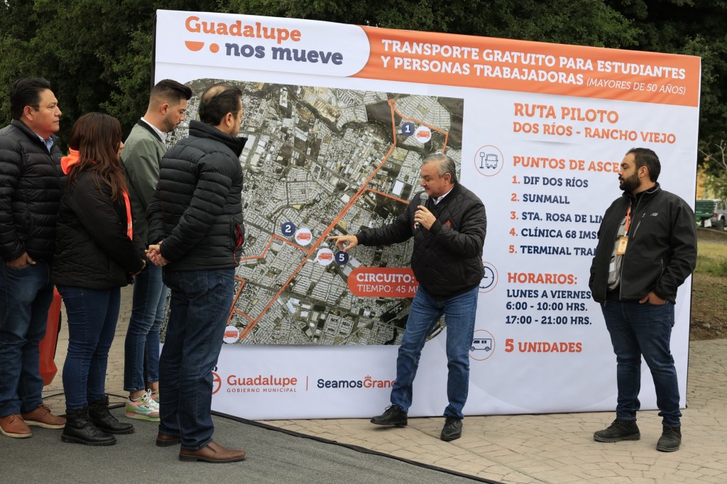 “Hoy iniciamos el programa ‘Guadalupe nos Mueve’, que contará con diversos circuitos para llevar a la gente desde el interior de sus colonias hacia avenidas principales, estaciones del transmetro o Metro, o bien para tomar su camión. Es gratuito y cumple con un compromiso de campaña en beneficio de la gente porque queremos coadyuvar en el tema de movilidad”, afirmó García.