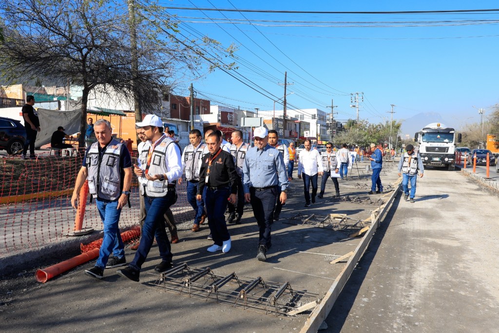Durante su recorrido, García estuvo acompañado por el secretario de Infraestructura y Desarrollo Urbano, Guillermo Hernández, y el secretario de Servicios Públicos, José Santos Valdés. En el lugar, personal de obra trabaja en la aplicación del concreto hidráulico, una solución que brindará mayor durabilidad y resistencia al pavimento.