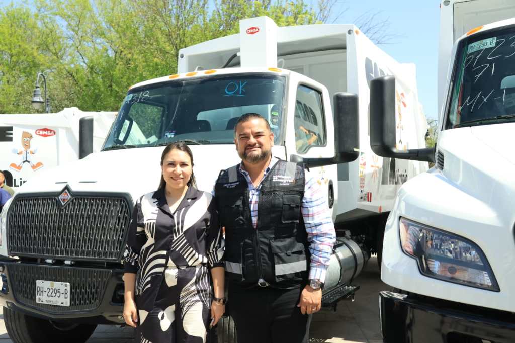 Acompañado de su esposa, la presidenta del DIF municipal, Aleida Montemayor Marroquín, así como de secretarios, directores y miembros del Cabildo, el edil presentó las nuevas unidades, que permitirán optimizar la recolección de desechos y reducir la carga de trabajo de los camiones más antiguos.