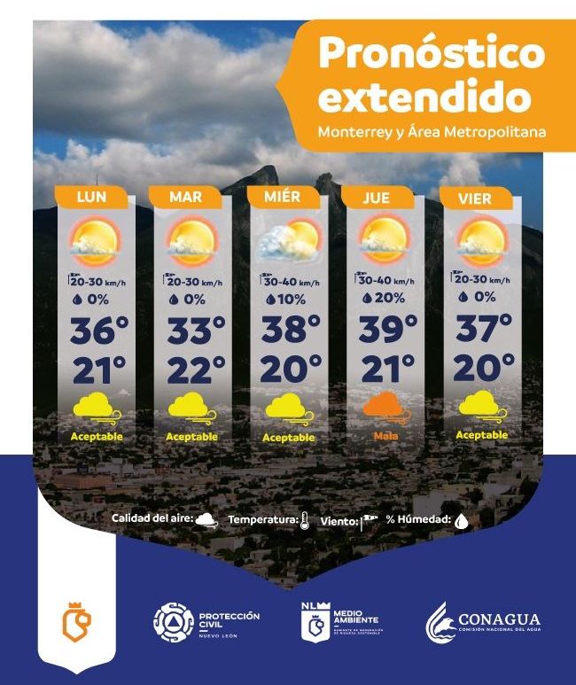 Altas temperaturas y fuertes vientos marcarán inicio de semana en MTY
