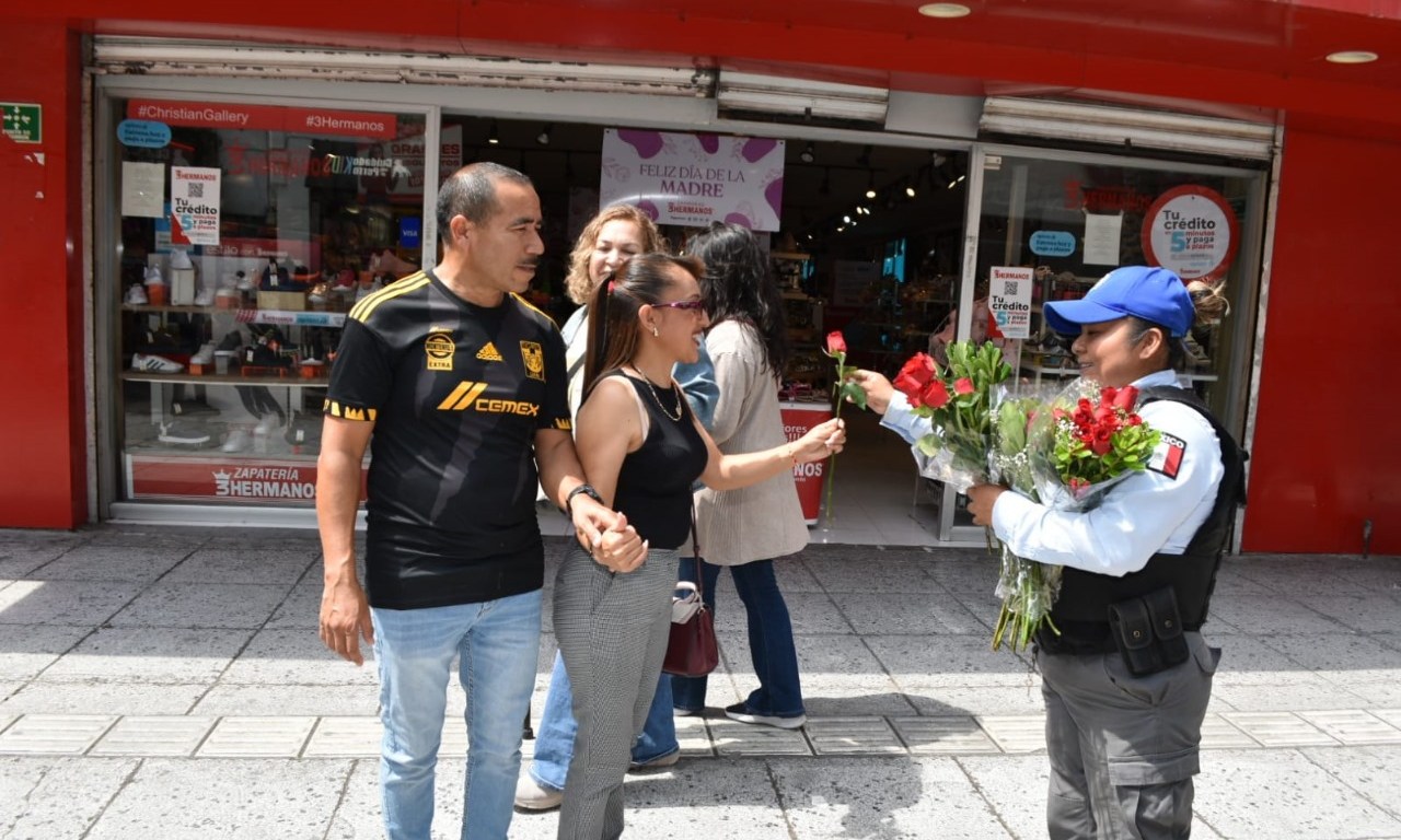 La mañana del sábado 10 de mayo, mujeres oficiales de la Policía de Monterrey recorrieron el centro de la ciudad para entregar flores a las madres regiomontanas, acompañando el gesto con un mensaje de felicitación enviado por el alcalde Adrián de la Garza Santos. Las mamás recibieron el obsequio con gratitud, reconociendo el detalle por parte de las autoridades municipales.