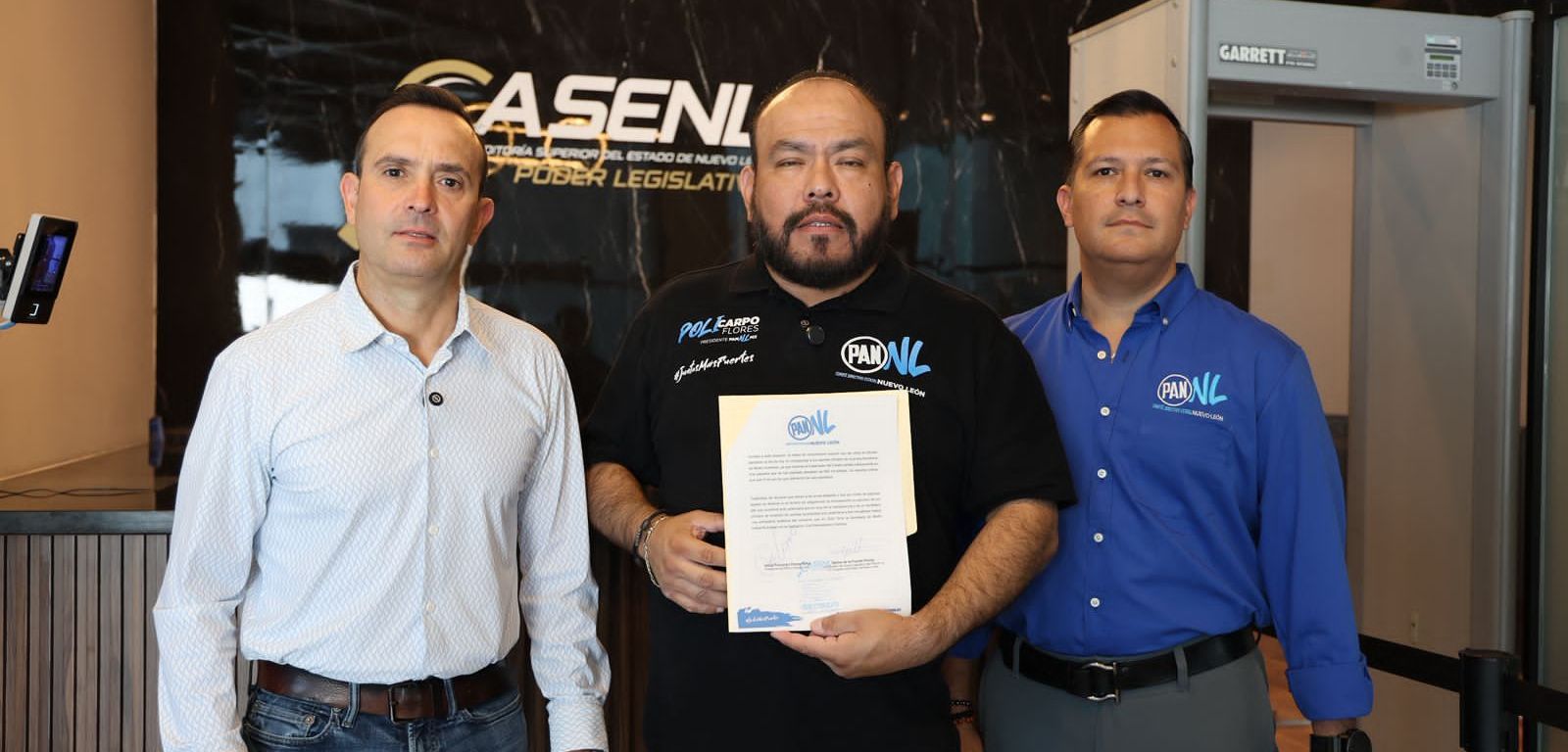 Carlos de la Fuente Flores, coordinador de los diputados locales del PAN, y Jesús Policarpo Flores, presidente del Comité Directivo Estatal del partido, presentaron la solicitud formal ante Alejandro Reynoso Gil, titular de la Auditoría Superior del Estado (ASE).