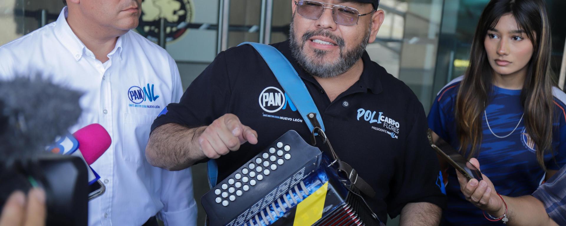 Durante su intervención ante medios, el dirigente panista ironizó al llevar consigo un acordeón (instrumento musical) y retó al gobernador a que “le enseñe cómo se usa”, en referencia al nombre del presunto operativo.
