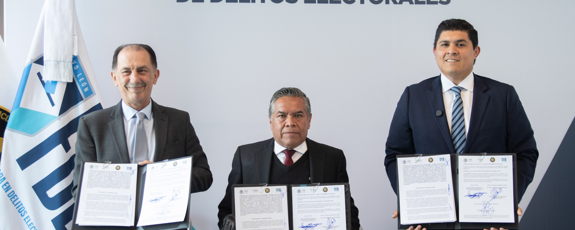 Monterrey, N.L. — Con el objetivo de fortalecer la legalidad y proteger la integridad del proceso electoral en curso, la Fiscalía Especializada en Delitos Electorales de Nuevo León (FDE) y la Fiscalía Especializada en materia de Delitos Electorales de la FGR (FISEL) firmaron este martes un convenio de colaboración que establece mecanismos permanentes de coordinación en la atención de denuncias y el combate a los delitos electorales.