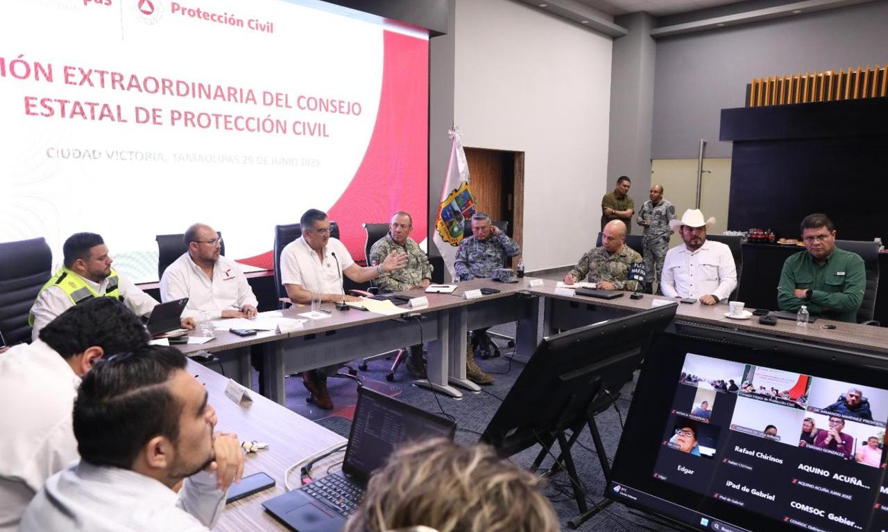 Ciudad Victoria, Tamps.– El gobernador Américo Villarreal Anaya encabezó este domingo una sesión extraordinaria del Consejo Estatal de Protección Civil para reforzar las medidas preventivas ante la inminente llegada de la tormenta tropical Barry, que se ubica en el Golfo de México.