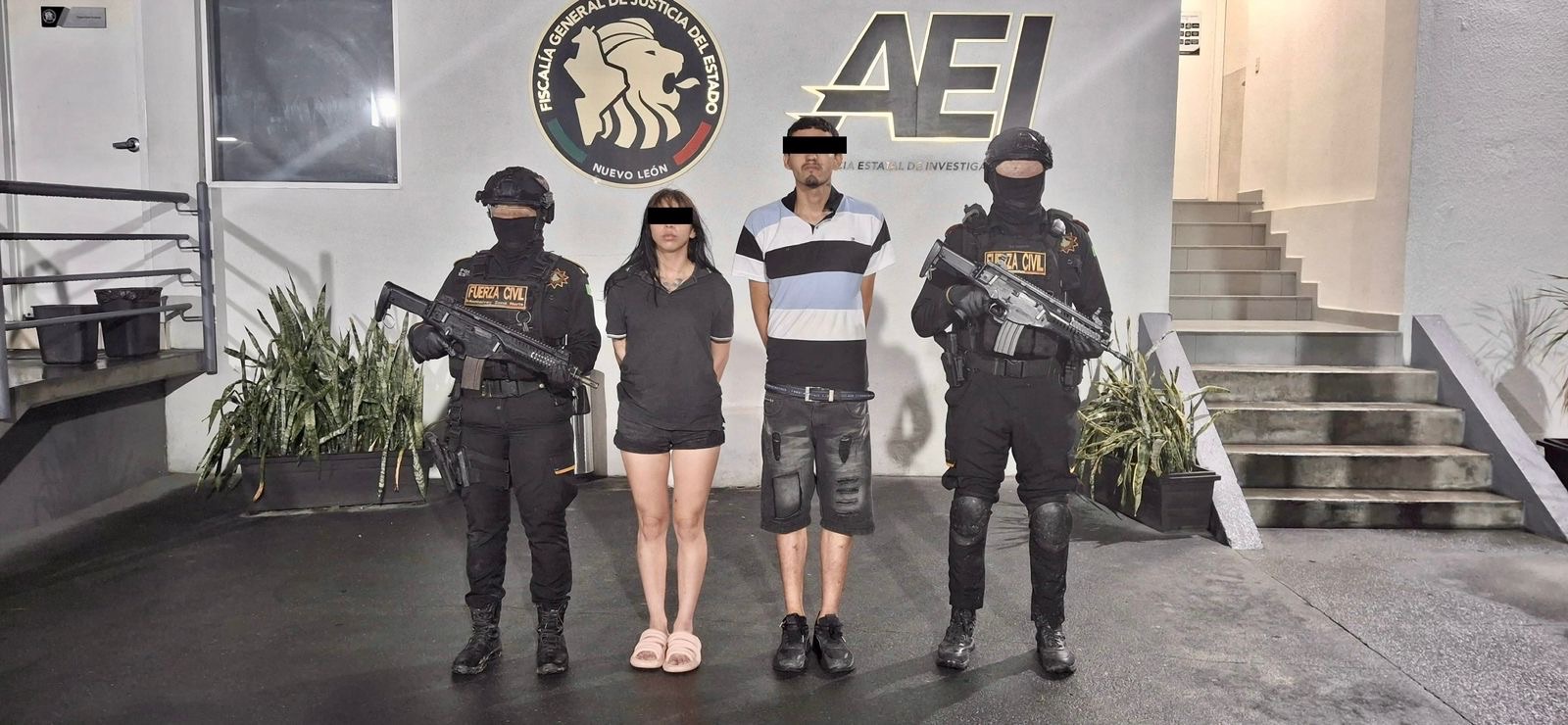 Monterrey, N.L.– Una pareja de jóvenes fue detenida por elementos de Fuerza Civil durante un operativo estratégico realizado esta madrugada en la colonia La Alianza, al norte de Monterrey, luego de que fueran sorprendidos discutiendo por una mochila que contenía armas y drogas.