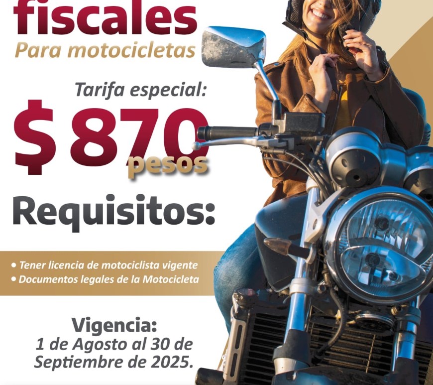 Ciudad Victoria, Tamps. – El Gobierno de Tamaulipas anunció beneficios fiscales para propietarios de motocicletas con adeudos, vigentes del 1 de agosto al 30 de septiembre, con el fin de transparentar el control vehicular y fortalecer la seguridad pública. El secretario de Finanzas, Jesús Lavín Verástegui, explicó que el acuerdo incluye “una reducción del cien por ciento en el pago de derechos por servicios de … Continúa leyendo Ofrece Tamaulipas descuentos del 100% a propietarios de motocicletas con adeudos