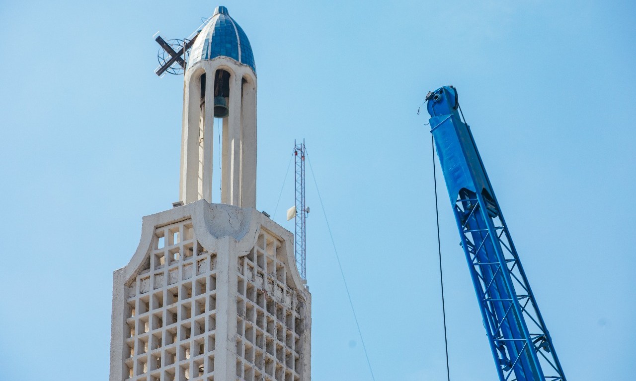 Guadalupe, N.L. — El Gobierno municipal retiró una cruz metálica de aproximadamente 35 kilogramos ubicada en la torre de la Parroquia Nuestra Señora de Guadalupe, ante el riesgo que representaba por su deterioro.