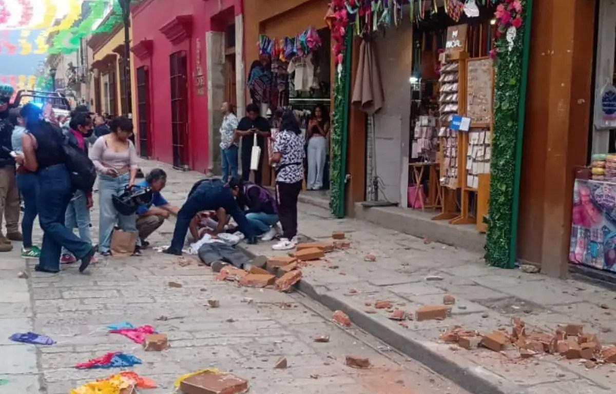 En la ciudad de Oaxaca, se reportó al menos una persona lesionada tras caerle una cornisa mientras caminaba durante el movimiento telúrico, según informó Manuel Maza Sánchez, titular de la Coordinación Estatal de Protección Civil y Gestión de Riesgos.