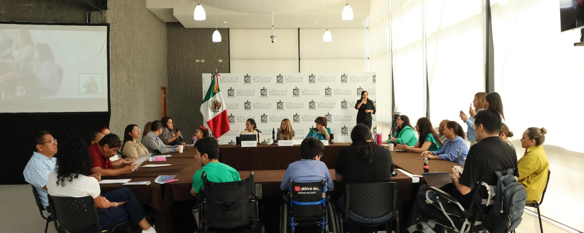 La diputada Perla Villarreal Valdez, presidenta de la Comisión de Educación, Cultura y Deporte, encabezó la reunión donde se escucharon propuestas para mejorar la infraestructura de las escuelas y capacitar a los docentes en atención a estudiantes con discapacidad.