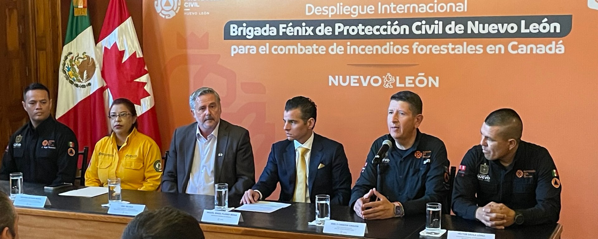 Monterrey, N.L.– Como parte de un convenio de colaboración entre Canadá y México, el secretario general de Gobierno, Miguel Ángel Flores Serna, anunció el despliegue internacional de la Brigada Fénix de Protección Civil de Nuevo León para apoyar en el combate de incendios forestales en territorio canadiense.