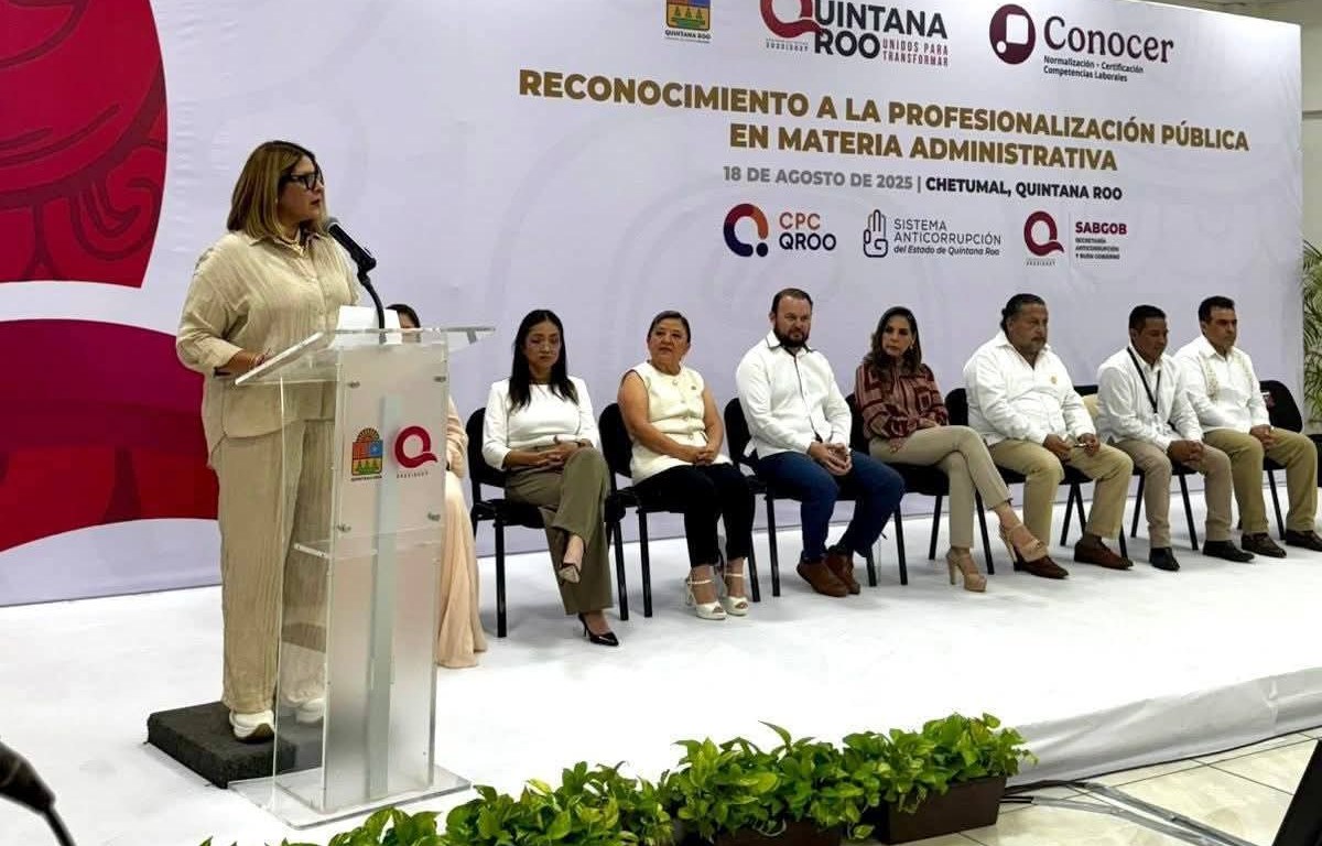 El pasado lunes, Guillermina Alvarado, en compañía de la gobernadora Mara Lezama y la presidenta municipal de Othón P. Blanco, Yensunni Martínez, entregaron reconocimientos a servidores públicos que se certificaron en la realización de Acciones de Investigación de Responsabilidad de Faltas Administrativas (EC 1556).
