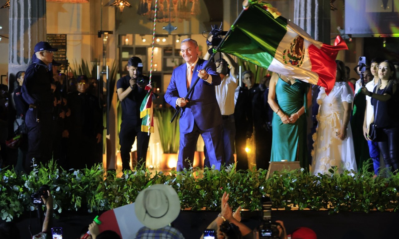 Guadalupe, N.L – La Plaza Principal de Guadalupe se llenó de color y tradición durante la ceremonia del Grito de Independencia, encabezada por el alcalde Héctor García, quien vivió por primera vez este acto cívico ante miles de ciudadanos.