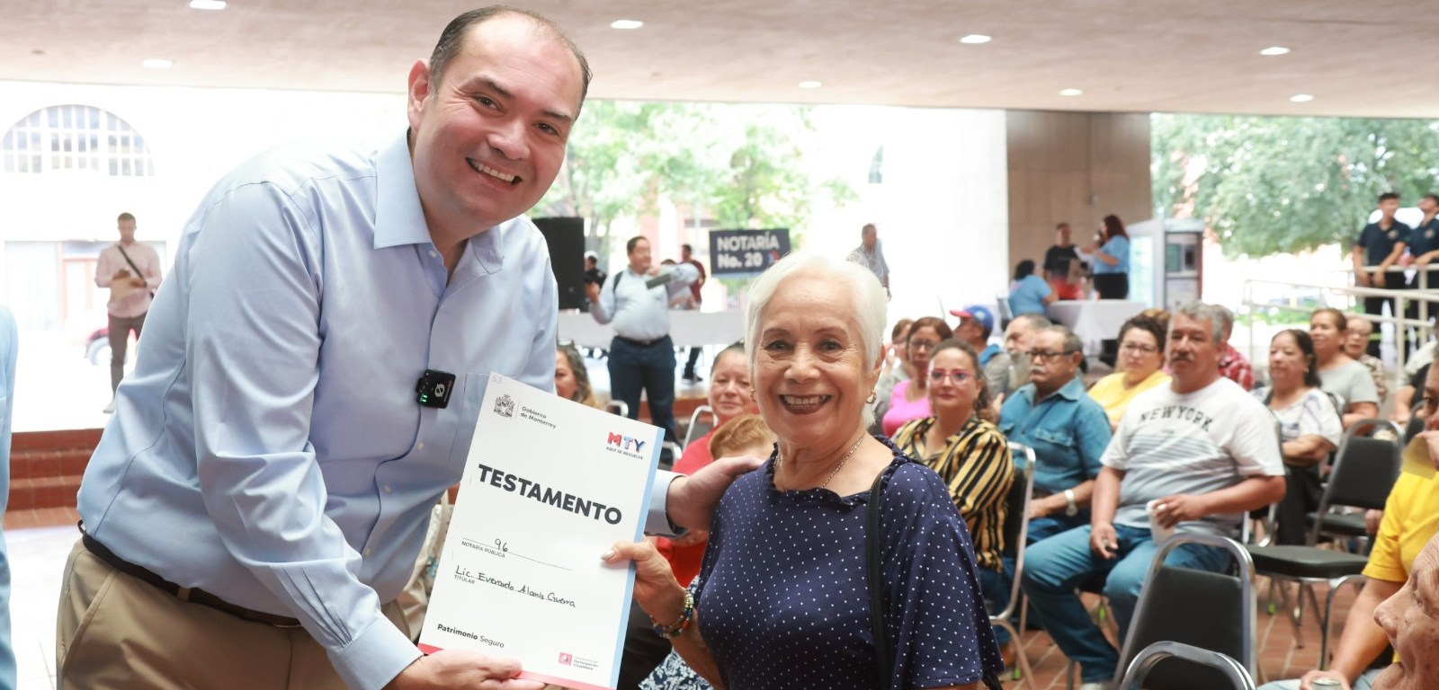El evento se realizó en la planta baja del Palacio Municipal, donde los regiomontanos recibieron su testamento tramitado a través del municipio.