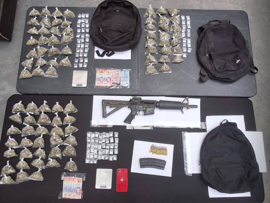 Los detenidos se identificaron como Edgar “N”, de 31 años; Misael “N” y Marcin “N”, ambos de 23. Durante la revisión, se les aseguraron un arma larga con 13 balas, 83 envoltorios con hierba verde con las características de la marihuana, 87 dosis de una sustancia sólida similar al cristal y dinero en efectivo.
