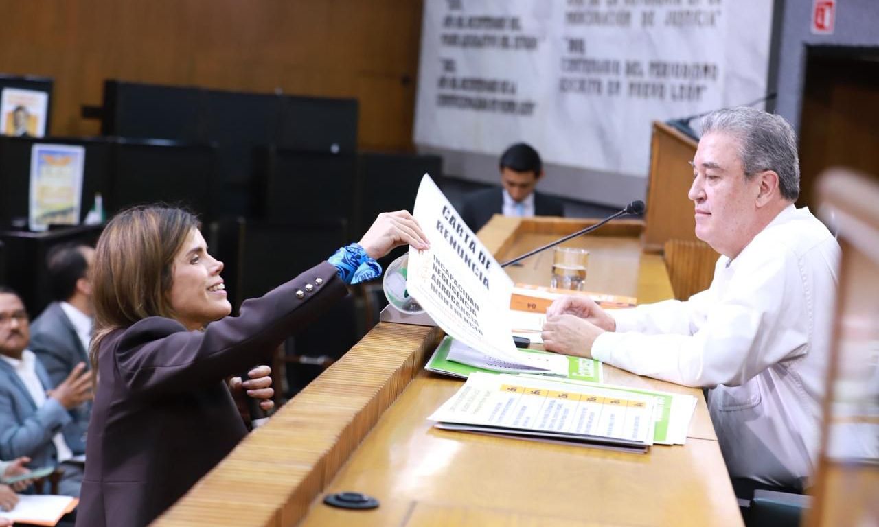 En su intervención final, Caballero Chávez entregó al funcionario una carta impresa de renuncia, la cual señalaba: “Por incapacidad, por negligencia, por arrogancia e indiferencia y por quitarle tiempo a los ciudadanos con la pésima forma de llevar la movilidad de Nuevo León.”