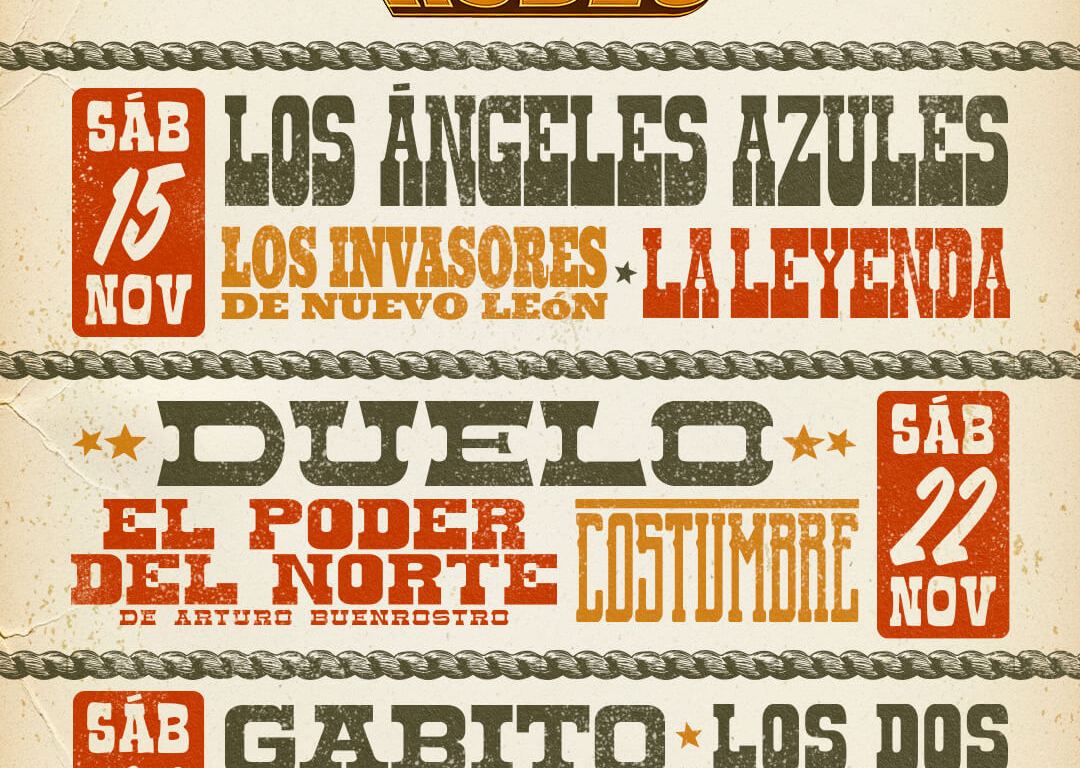 El cartel musical incluye a El Poder del Norte, Gabito Ballesteros, Los Dos Carnales y Los Ángeles Azules, artistas que representan distintas generaciones y estilos dentro del regional mexicano.