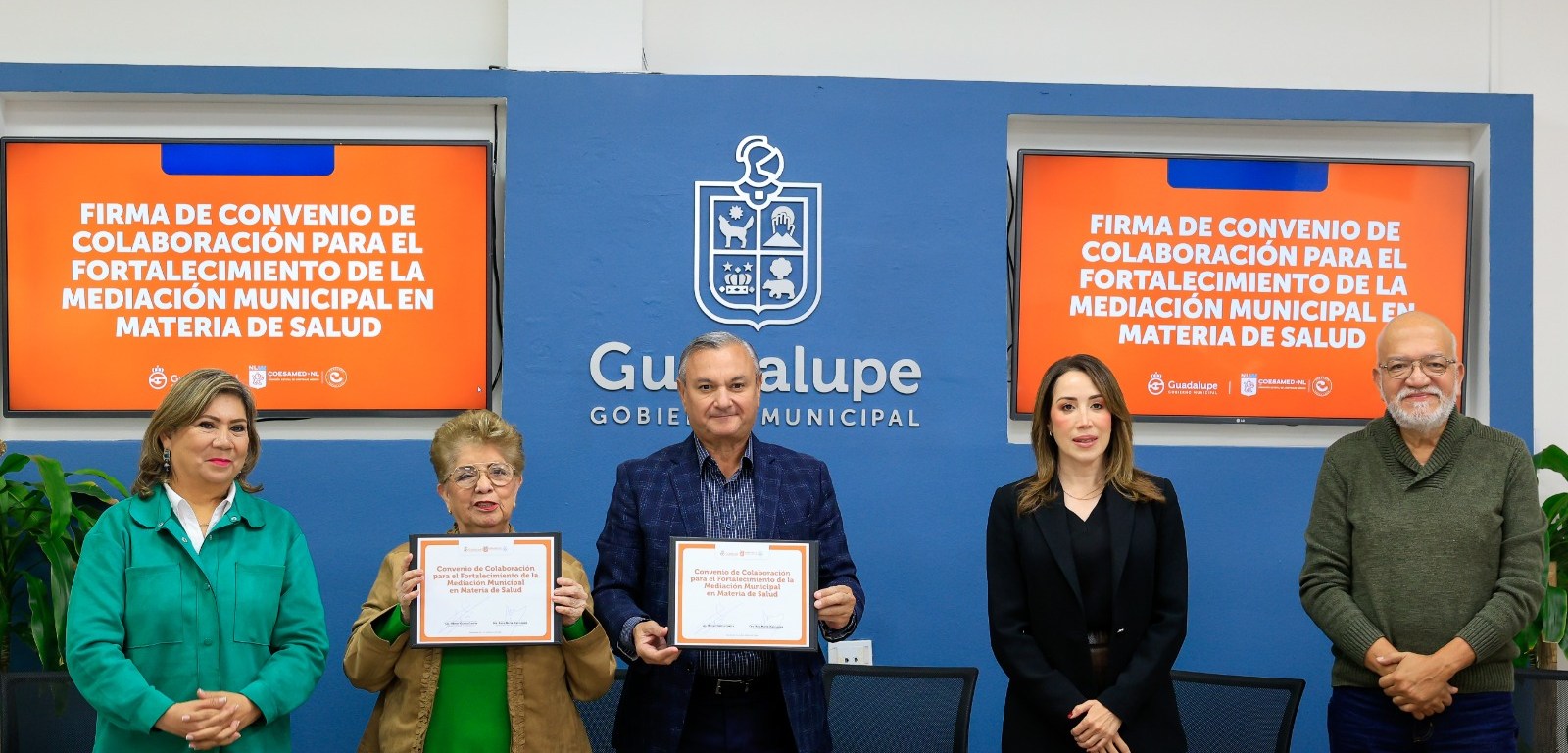 Guadalupe, NL. – El Municipio de Guadalupe y la Comisión Estatal de Arbitraje Médico (COESAMED) firmaron un convenio de colaboración para apoyar a ciudadanos que enfrenten inconformidades derivadas de la prestación de servicios de salud, privilegiando la mediación y la solución pacífica de conflictos.