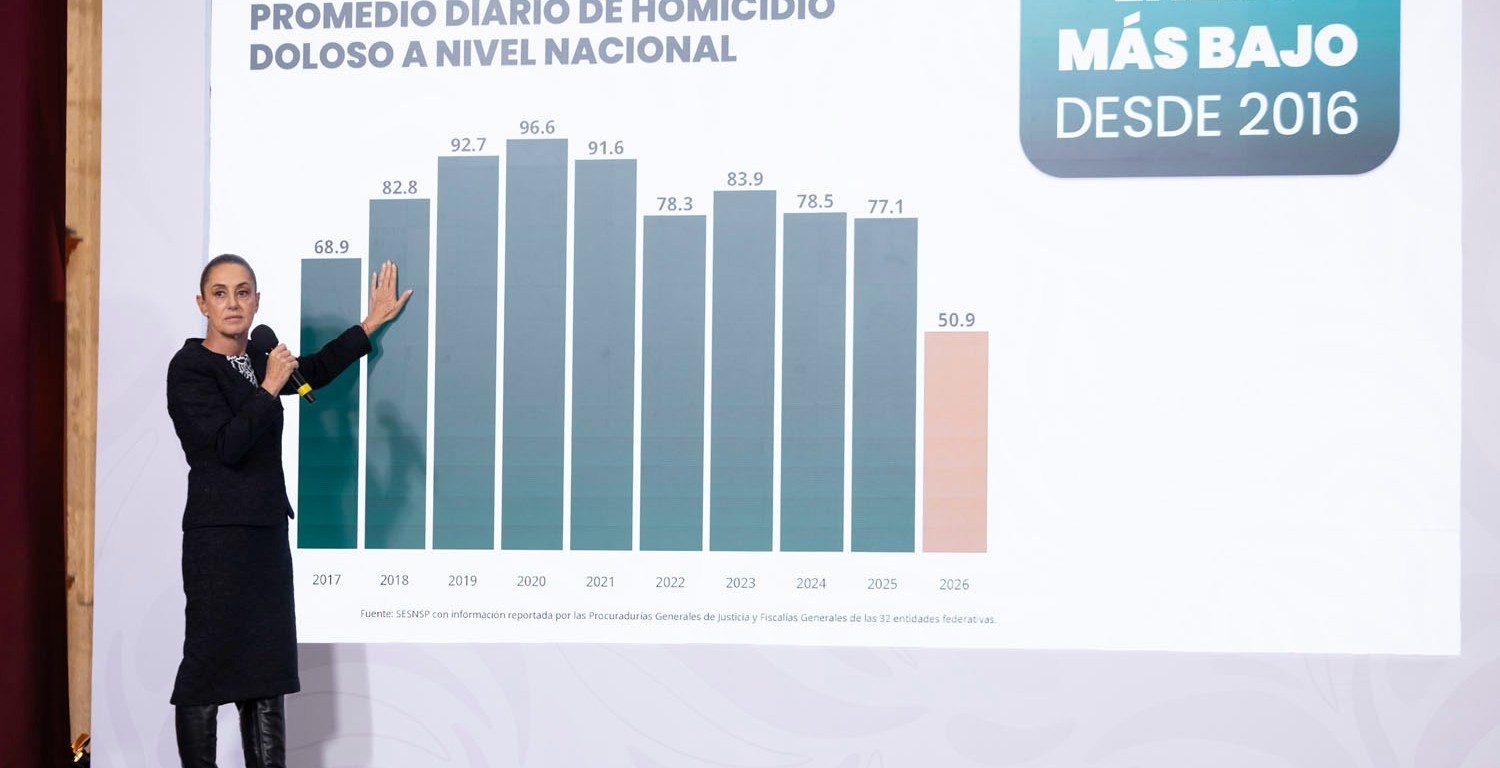 Ciudad Victoria, Tamps. – Tamaulipas registró 14 homicidios dolosos durante enero de 2026, la cifra más baja para ese mes en los últimos diez años, de acuerdo con datos presentados en la conferencia Mañanera del Pueblo encabezada por la presidenta Claudia Sheinbaum.