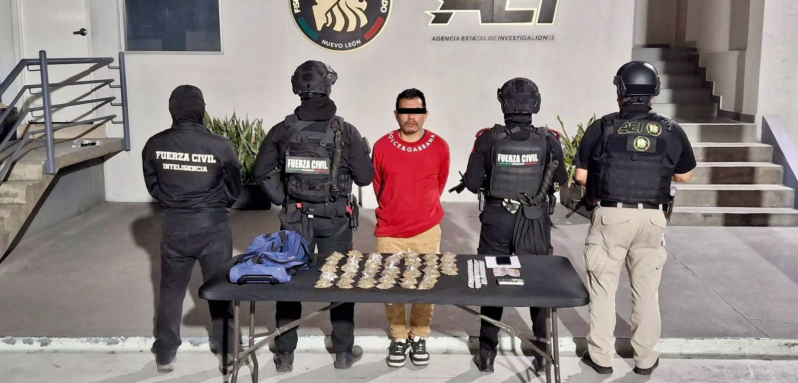 Monterrey, N.L.– Un hombre fue detenido por elementos de Fuerza Civil en coordinación con la Agencia Estatal de Investigaciones, al ser sorprendido presuntamente en posesión de diversas dosis de narcóticos en el poniente de la ciudad.