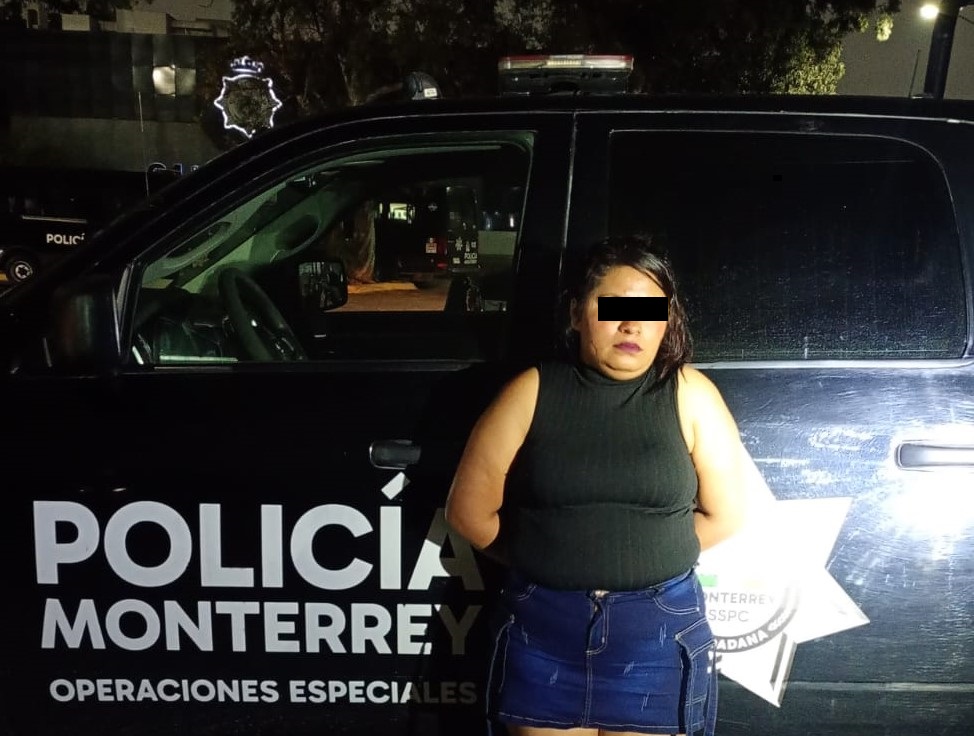 La captura de Xóchitl L., de 25 años, se registró alrededor de las 22:10 horas en el cruce de las calles Aramberri y Jiménez, durante un recorrido de prevención y vigilancia por parte de los oficiales.