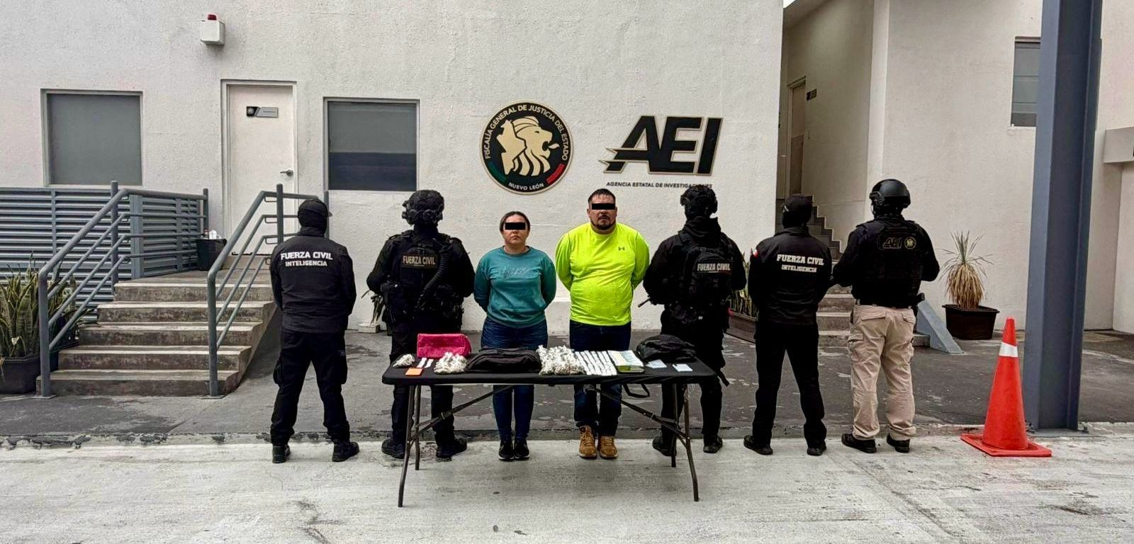 Monterrey, NL. — Elementos de Fuerza Civil detuvieron a una pareja señalada como presuntos generadores de violencia, tras asegurarles más de 200 dosis de droga durante un operativo en la zona norte de la ciudad.